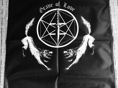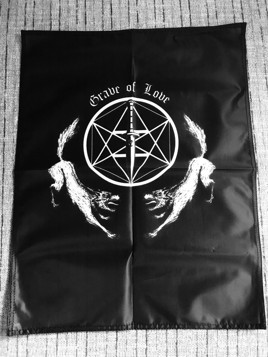 65x50 cm flag, digital print, supralon 110g/m2 with Grave of Love DECAY front cover.